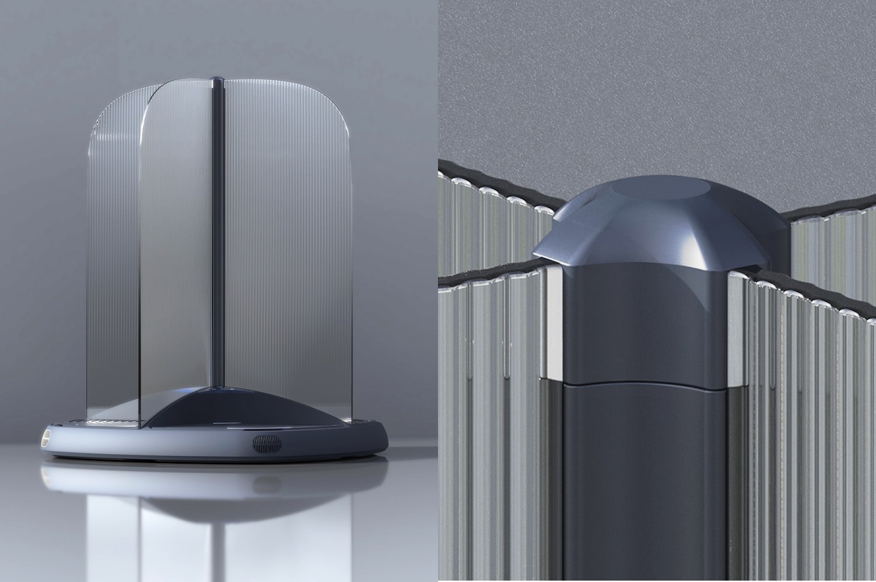 这款多人同时身体烘干机采用银灰色的颜为主色调极具现代感和高级感,在外观设计上和一般的身体烘干机不同,多人同时身体烘干机可以同时进行四个人的身体快速烘干,这四个人即使面对面也不会尴尬,因为这四个烘干区域部分别由不透明的磨砂玻璃过渡隔开,可以保障每个人在进行身体烘干时的个人隐私问题;另外多人同时身体烘干机脚下的整个脚凳采用同心圆设计,为用户的脚部提供更柔软的表面,同时脚踏板被分成四等份,而且每个部分都可以拆下来单独清洗,即使是滴下来的水也不会留在脚凳上,保持充分的干燥的使用体验。