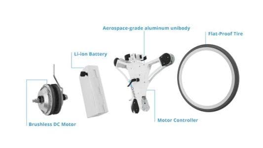 GeoOrbital Wheel 电车轮采用了松下36V可拆卸锂电池;在测试中全程不蹬脚踏板的情况下你最多可以用它骑行12英里(约20公里);如果你还想继续踩踏板的话,每次充电后可以骑行30英里(约50公里)的距离;它还能够适应多种极端天气,适合一年四季使用;为了避免胎压不稳以及漏气泄气问题, GeoOrbital Wheel 选用了泡沫硬海绵作为其外胎材质,即使碰到了钉子轮胎也不会漏气。